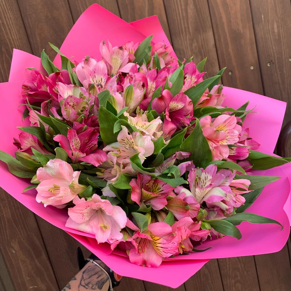 Альстромерия – 17 шт.Лента атласная – 1 шт.Упаковка дизайнерская – 1 шт.