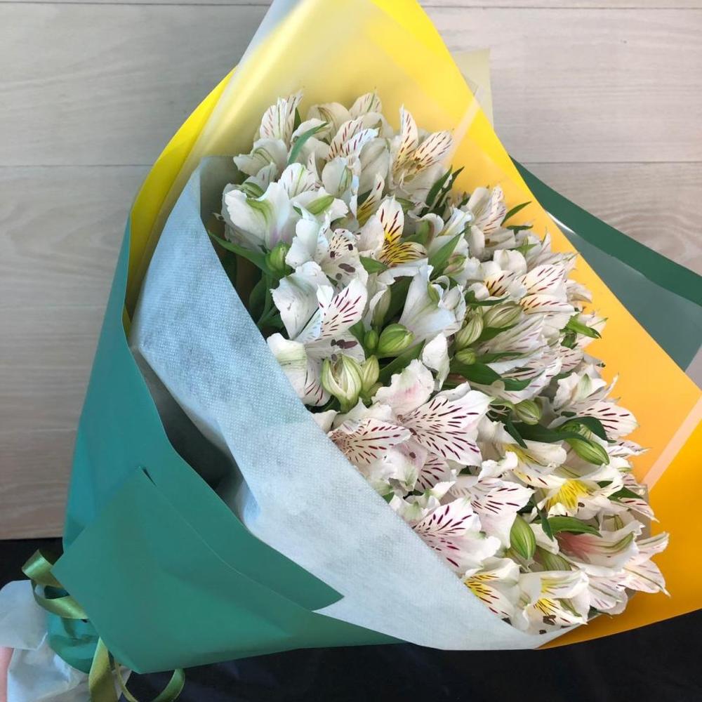 Альстромерия – 11 шт.Упаковка дизайнерская – 1 шт.Лента атласная – 1 шт.