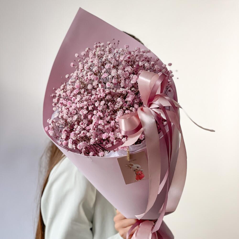 Гипсофила – 3 шт.Лента – 1 шт.Тишью – 1 шт.Упаковка дизайнерская – 1 шт.Открыточка с вашими пожеланиями – 1 шт.
