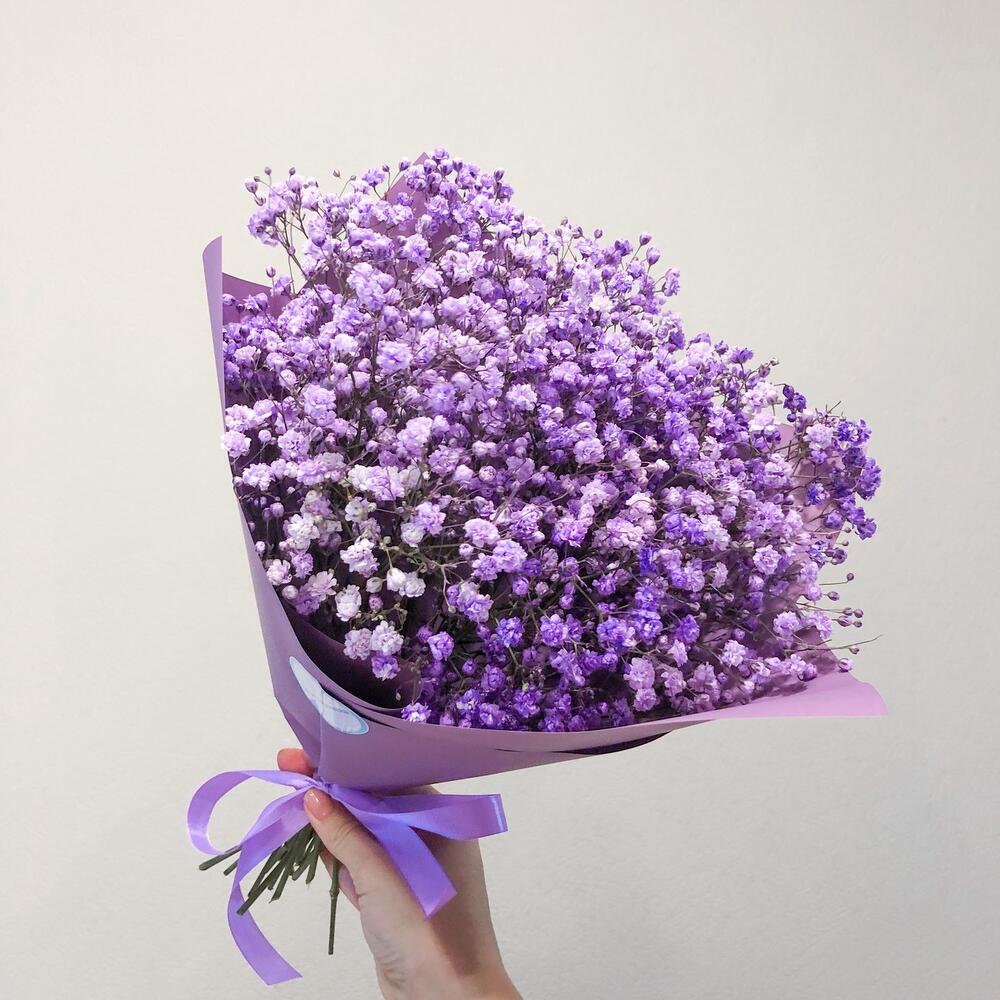 гипсофила цветная – 4 шт.Упаковка корейская пленка – 1 шт.Лента атласная – 1 шт.инструкция по уходу за цветами – 1 шт.Упаковка транспортировочная пленка – 1 шт.