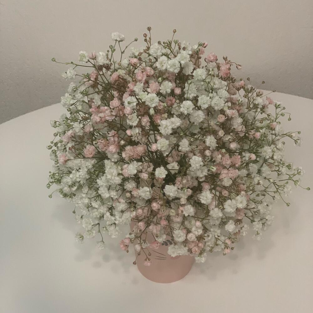 “Сиреневый туман” – композиция из гипсофилы в шляпной коробке