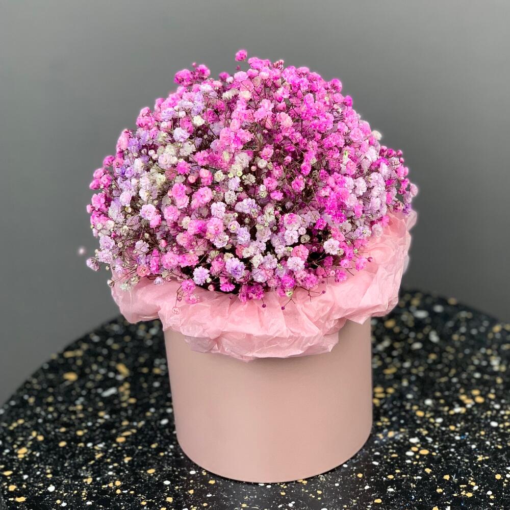 "Атлас☁️" - цветочная композиция с зефиром в деревянном ящике