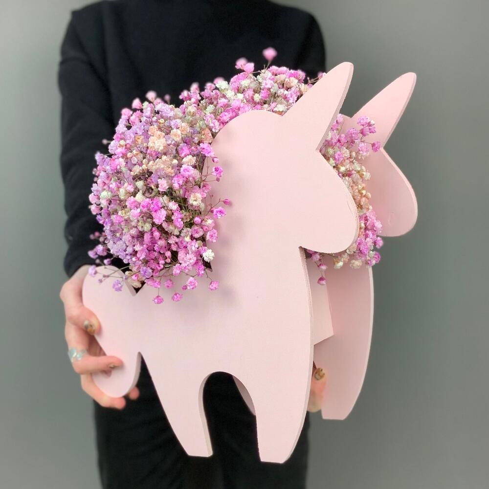 ящик единорог – 1 шт.Гипсофила – 7 шт.