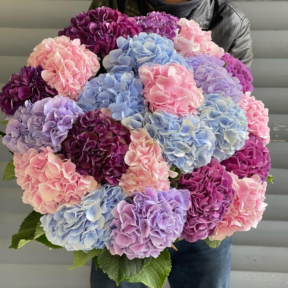 Гвоздики, Гортензии, Кустовые розы, Лизиантусы, Пионовидные розы, Розы