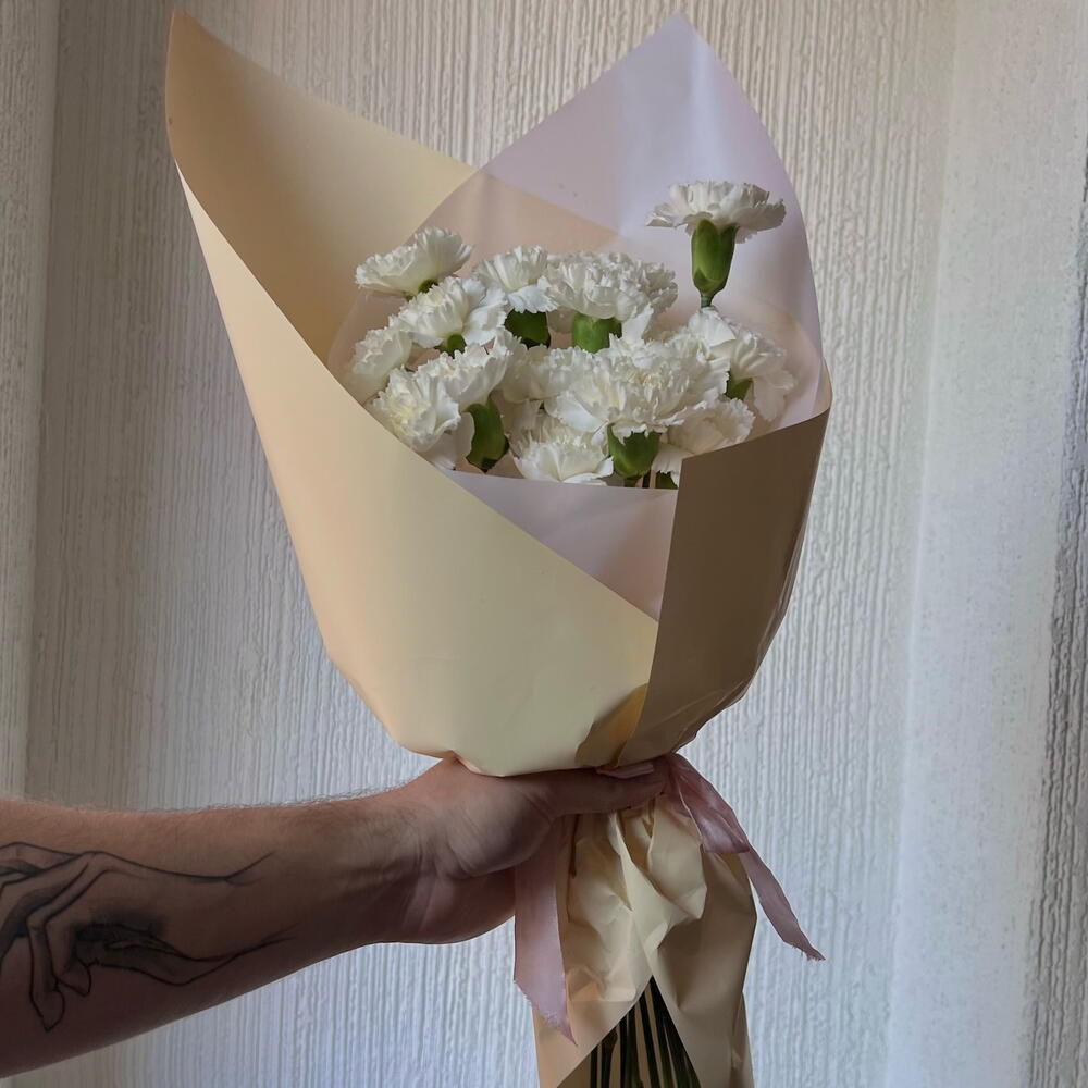 Гвоздики, Пионовидные розы, Розы