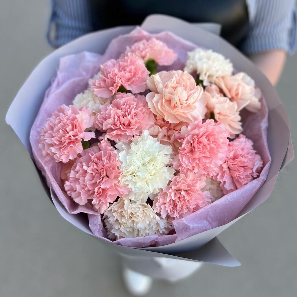 Лента атласная – 2 шт.Диантус – 21 шт.Упаковка дизайнерская – 3 шт.