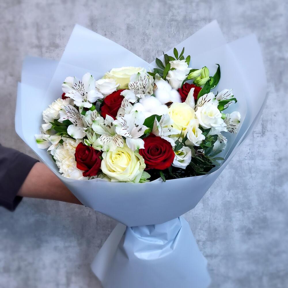 Гвоздики, Кустовые розы, Пионовидные розы, Розы