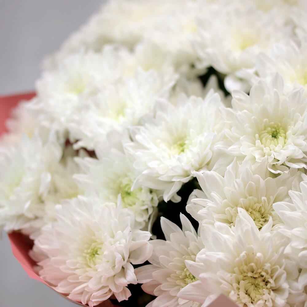 Букет из 15 белых кустовых хризантем Балтика в стильной упаковке