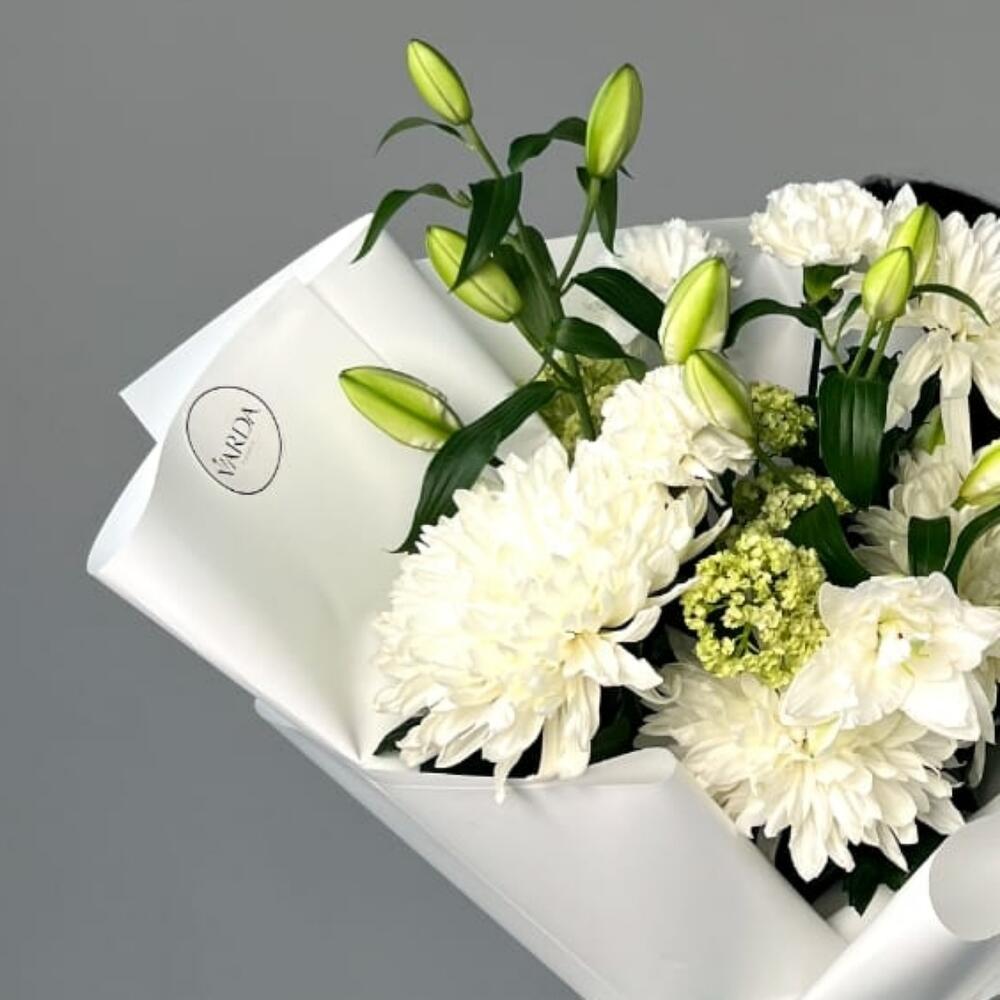 Лилия белая – 3 шт. Одноголовая хризантема – 4 шт.