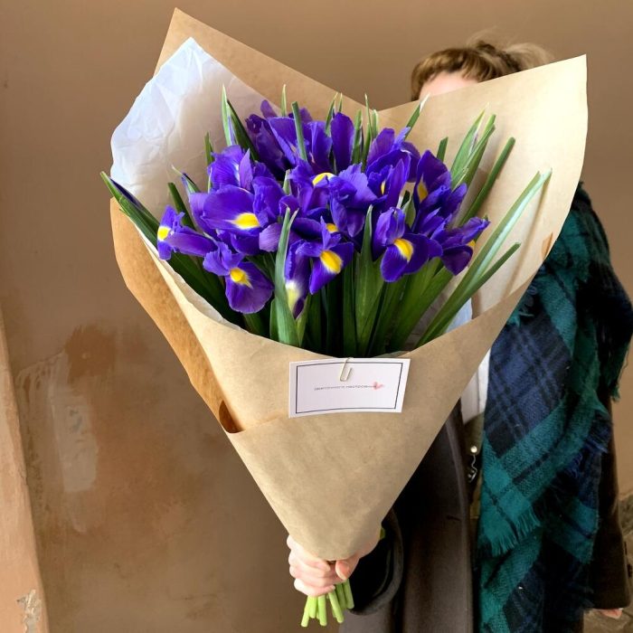 Крафтовая упаковка – 1 шт.ирисы синие – 15 шт.