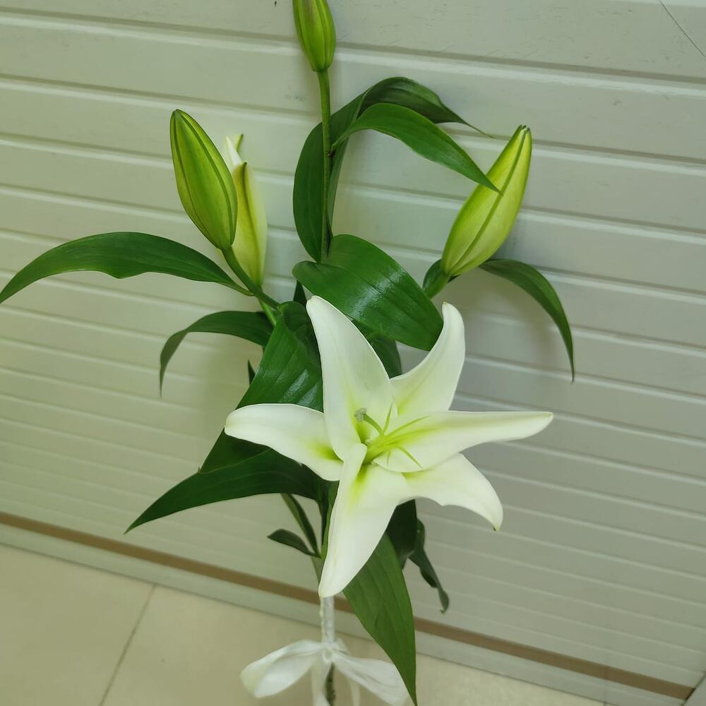 лилия ориентал белая – 1 шт.Лента атласная – 1 шт.