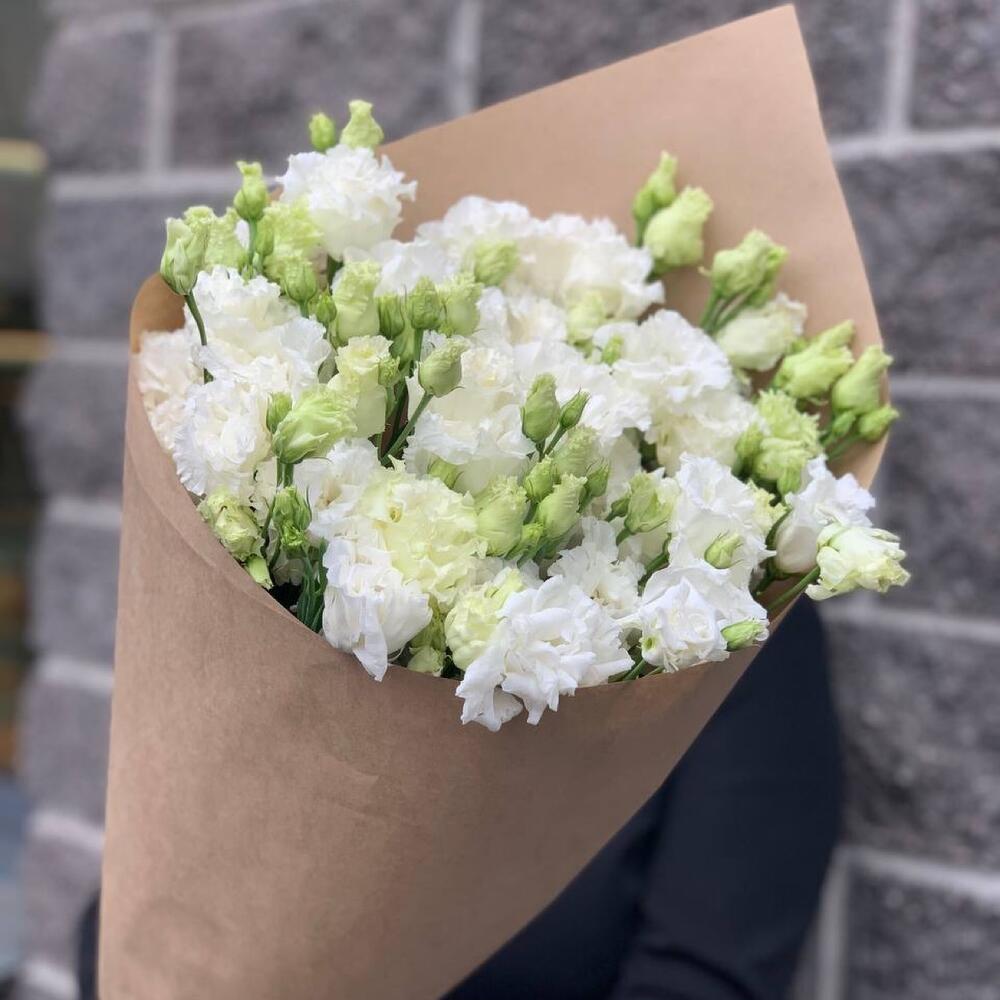 Эустома – 7 шт.Крафт упаковка – 1 шт.бечевка натуральная – 1 шт.
