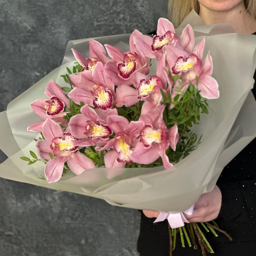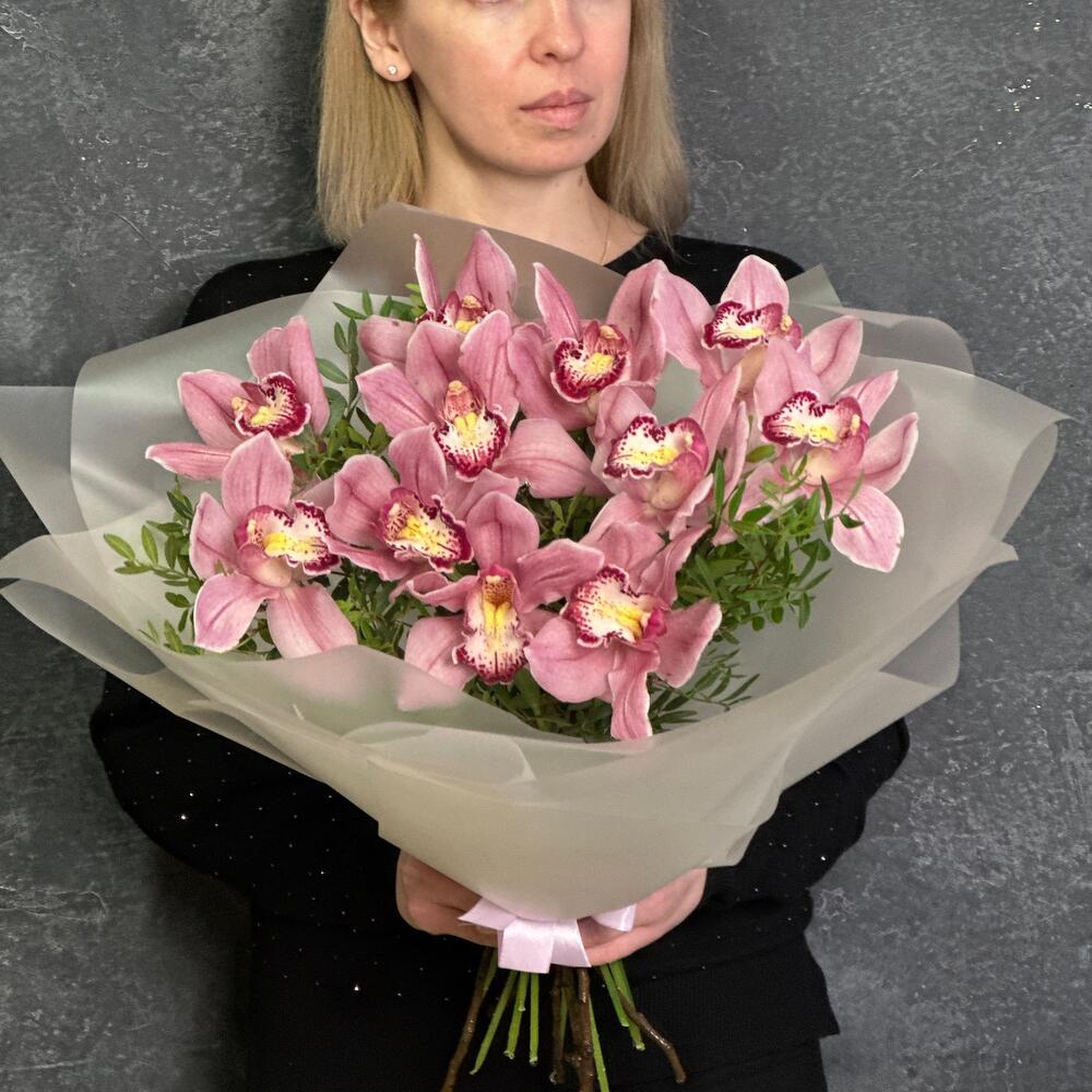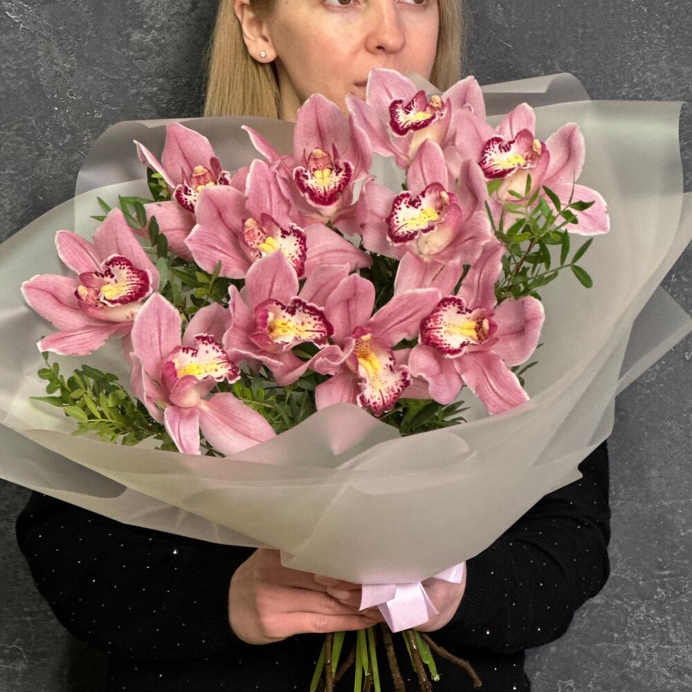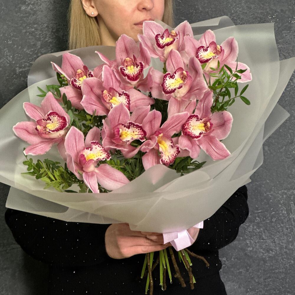 Букет из 11 орхидей с зеленью