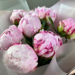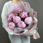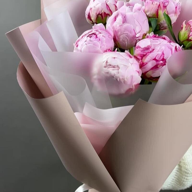 Лента атласная – 2 шт.Пион Сара Бернар – 7 шт.Пленка матовая – 5 шт.пленка полупрозрачная – 6 шт.