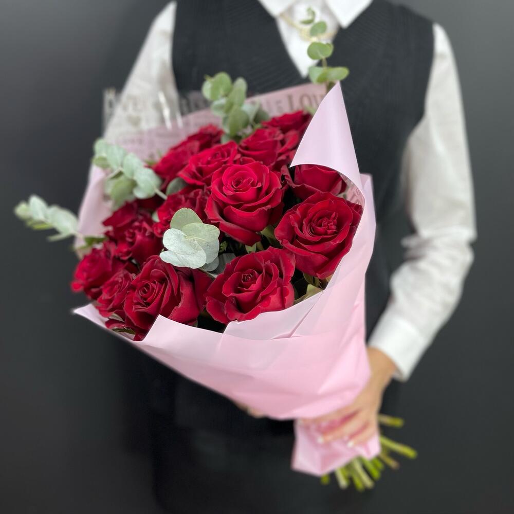 Роза – 17 шт.Эвкалипт – 5 шт.Упаковка дизайнерская – 5 шт.