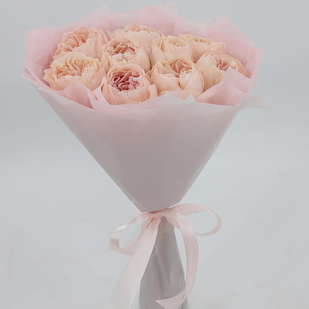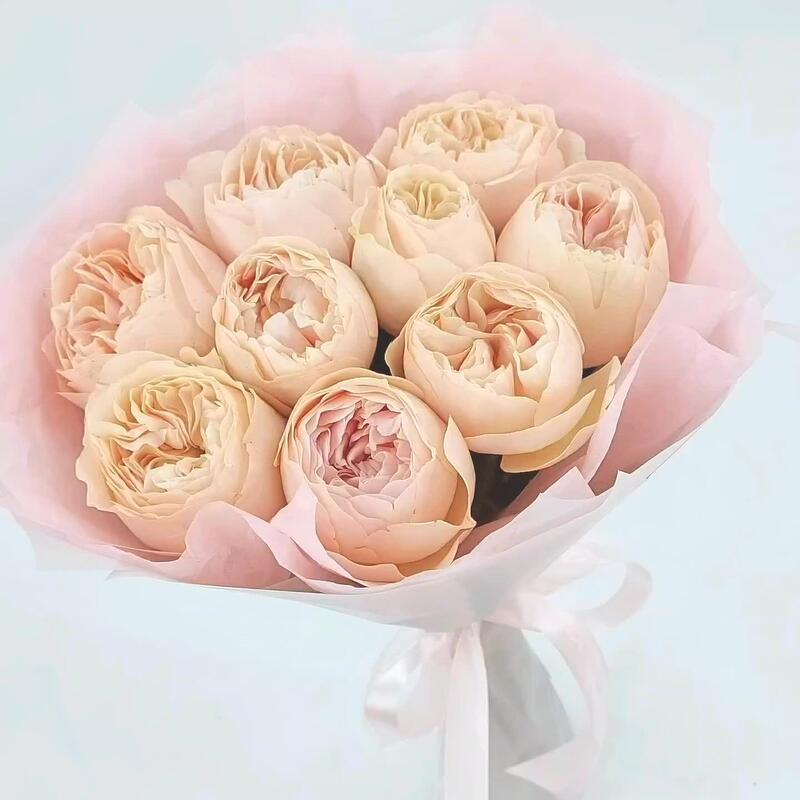 Роза пионовидная – 9 шт.Упаковка дизайнерская – 1 шт.