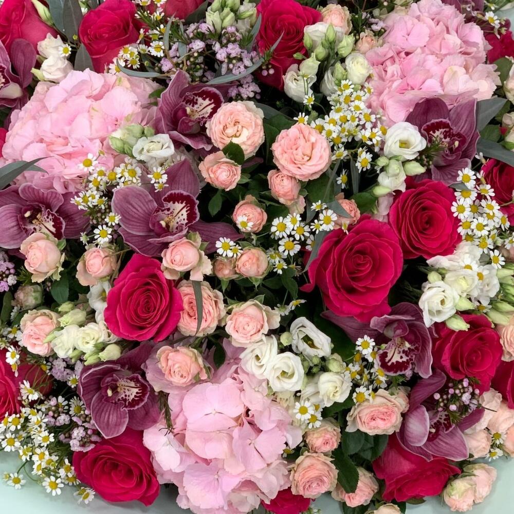 Гвоздики, Кустовые розы, Лизиантусы, Пионовидные розы, Розы