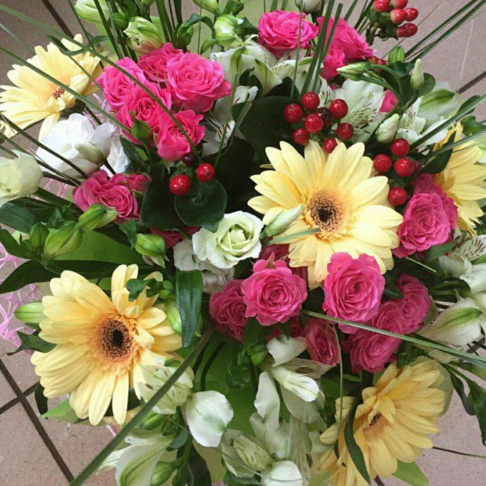 Категории: Альстромерии, Герберы, Розы