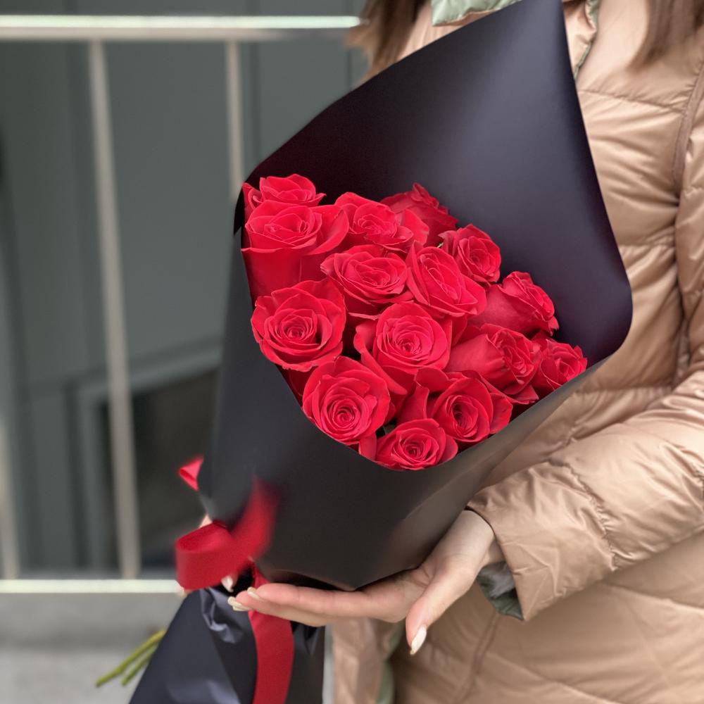 роза красная фридом – 15 шт. Оформление – 1 шт.