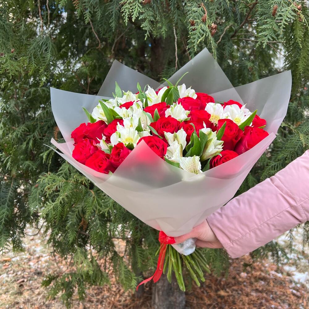 Букет из роз и Альстромерии