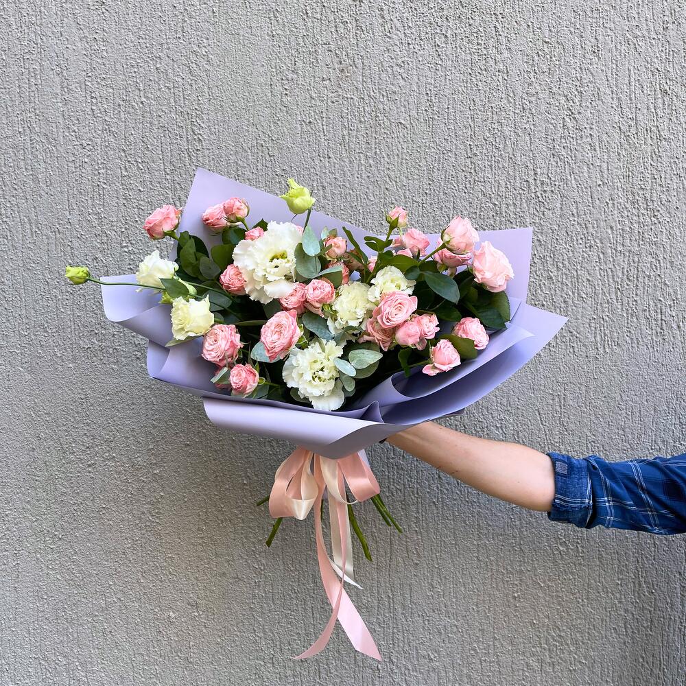 Представляем вам наш небольшой букет микс, который сочетает в себе нежную эустому и веточную розу. Этот букет – это нежный акцент к вашему дню, а бесплатная доставка по Тбилиси делает заказ особенно привлекательным.