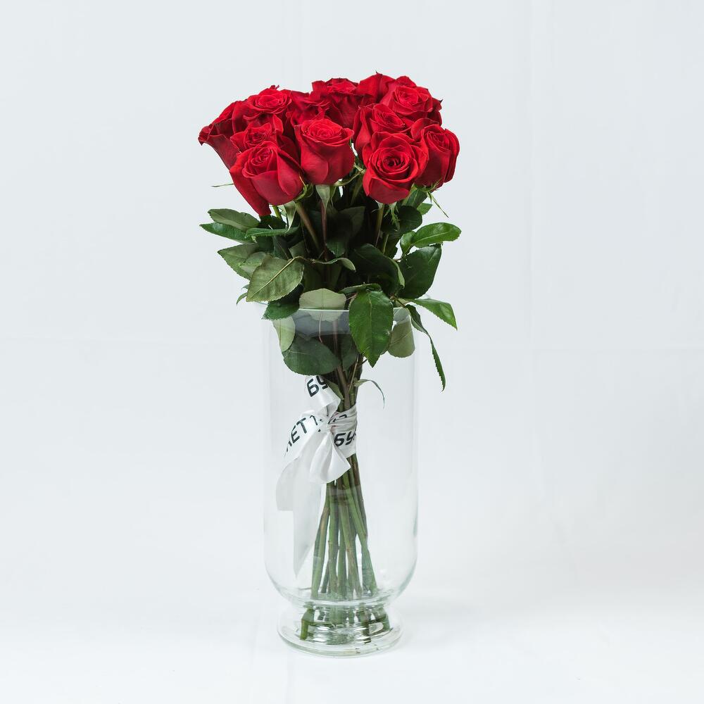 Роза Эквадор – 15 шт.Пленка прозрачная – 1 шт.Лента атласная – 1 шт.