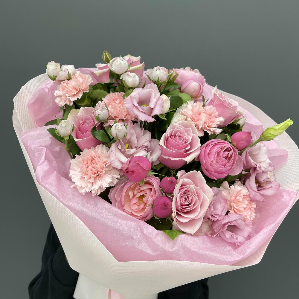 Гвоздики, Кустовые розы, Пионовидные розы, Розы