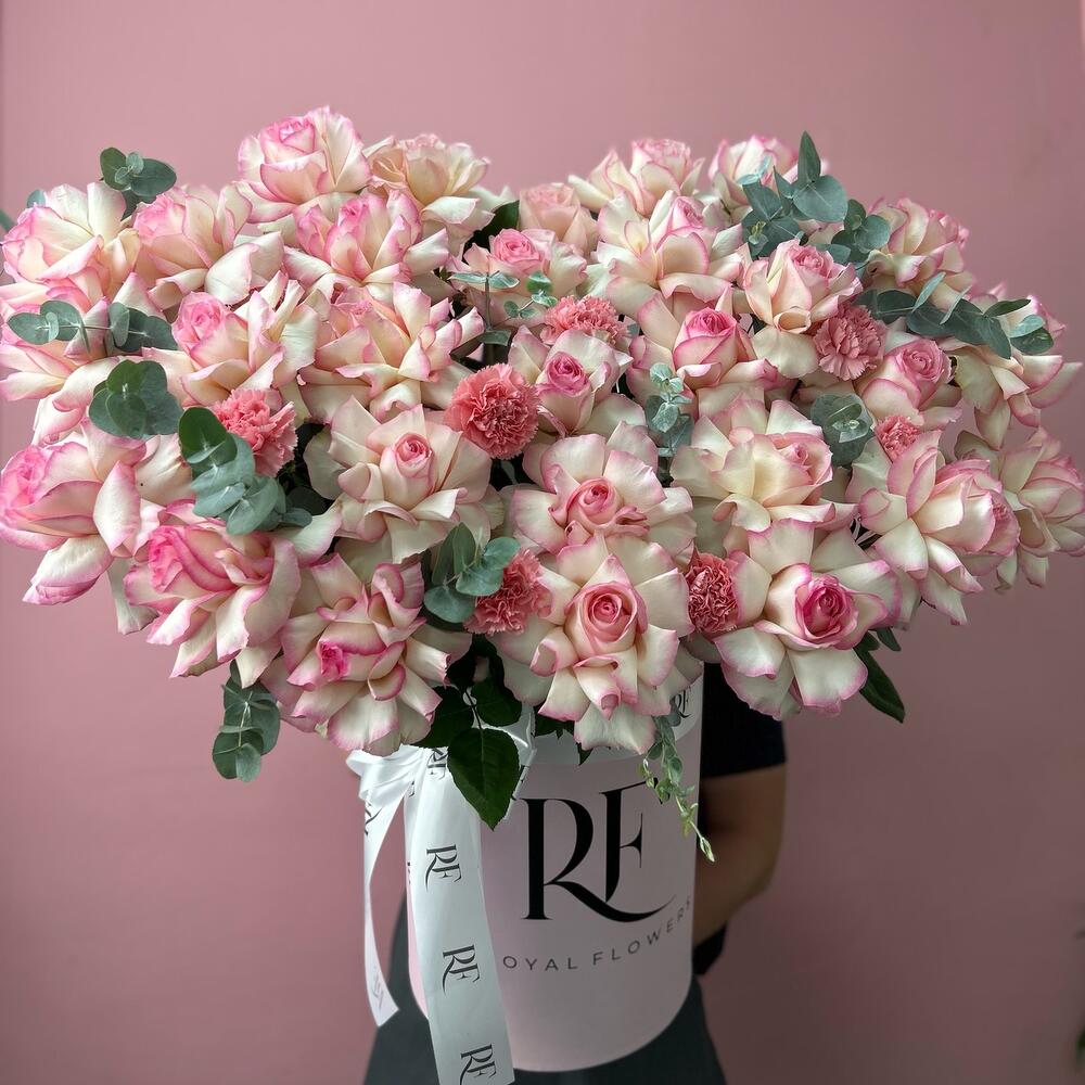 Гвоздики, Кустовые розы, Лизиантусы, Пионовидные розы, Розы