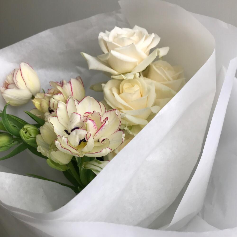 роза молочного оттенка – 5 шт.тюльпан кустовой фермерский – 3 шт.