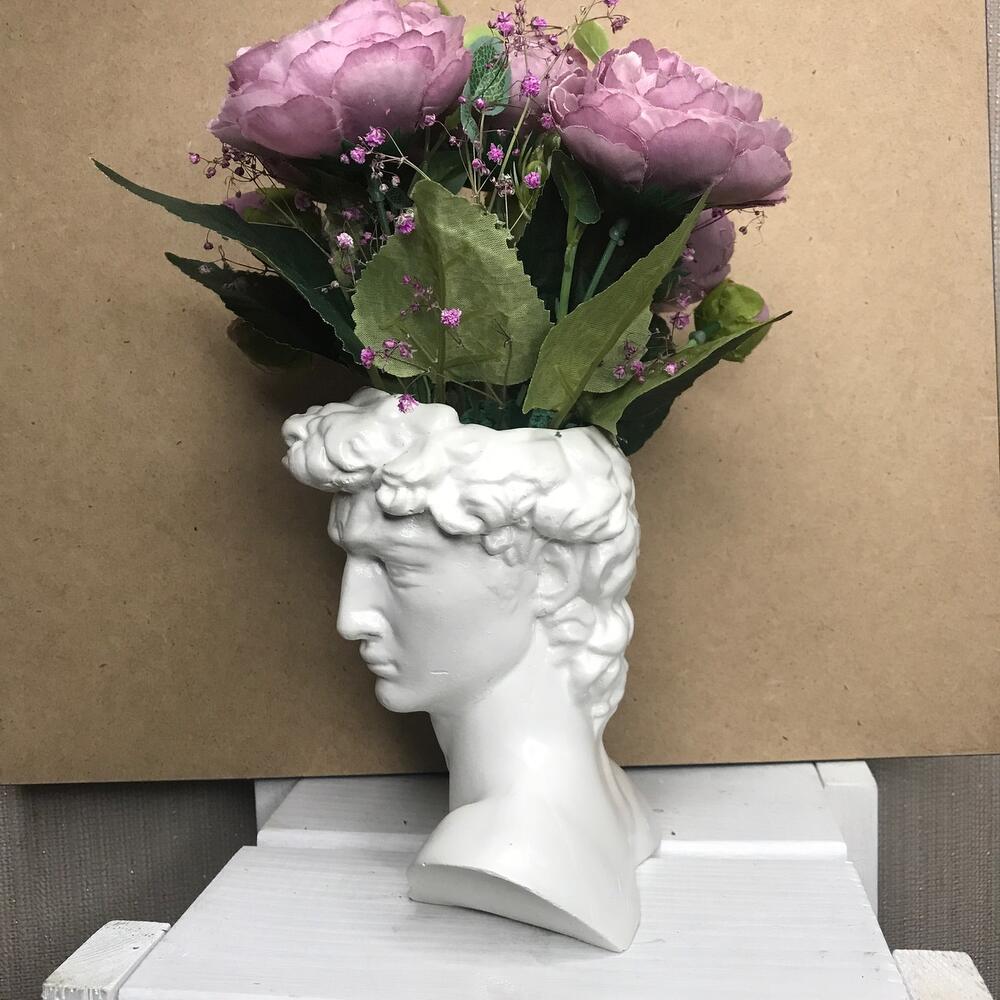 роза искусственная бутон – 5 шт.гипсофила ветка – 1 шт.кашпо гипсовое «давид» – 1 шт.