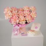 “Сладкое сердце ” – цветочная композиция с сладостями в коробке “Сердце”