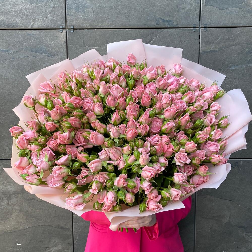 Букет из 101 высокой кустовой розы 60-70 см в стильной упаковке