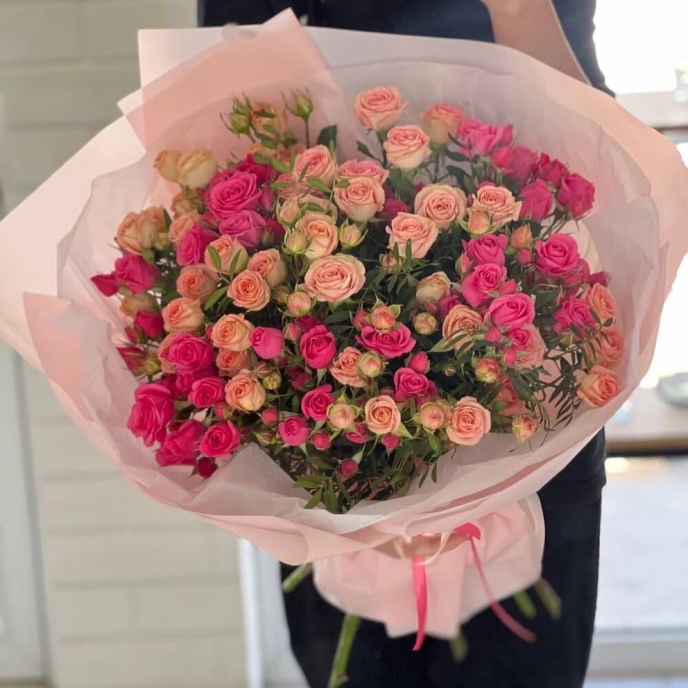 Гвоздики, Кустовые розы, Пионовидные розы, Розы