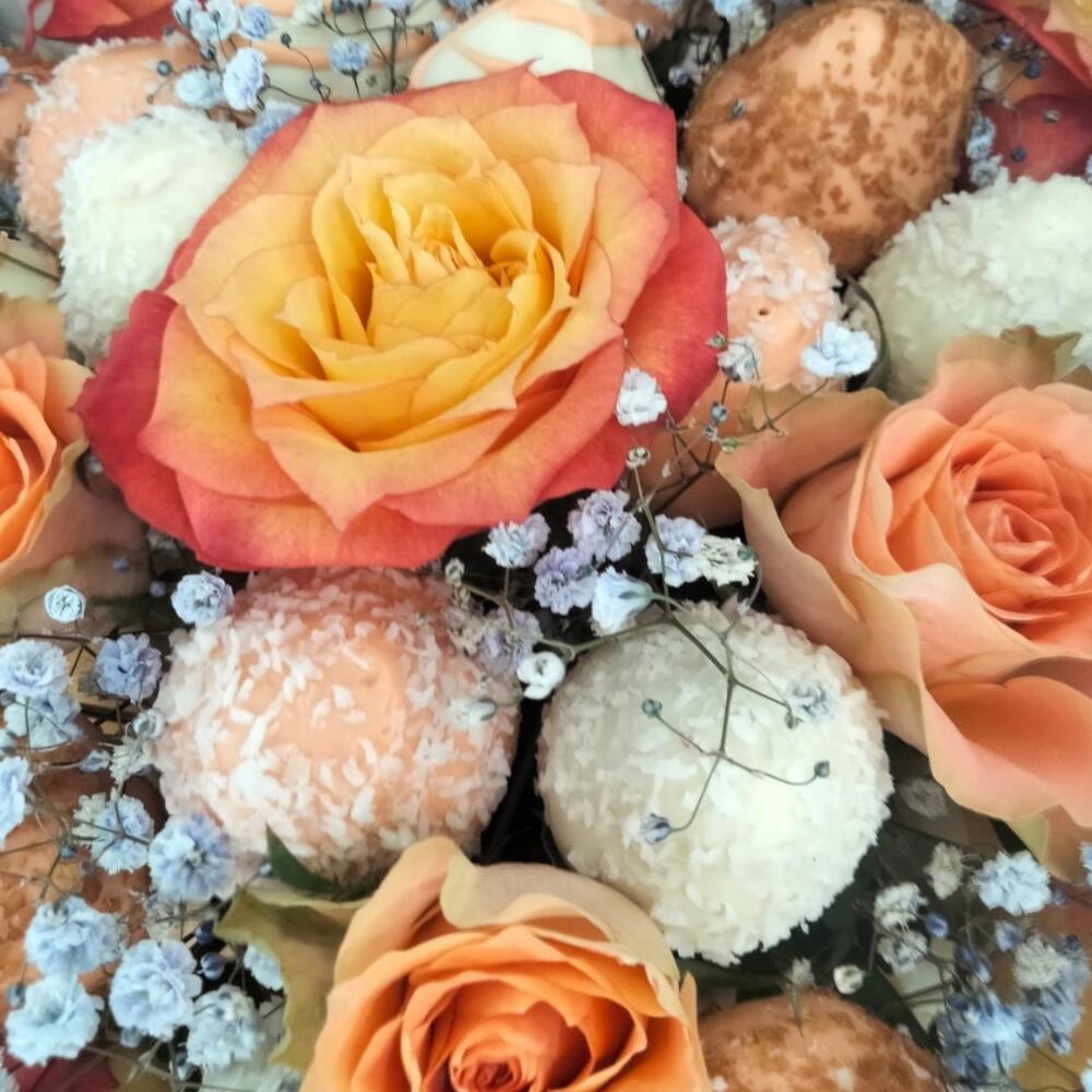 “Сладкое сердце ” – цветочная композиция с сладостями в коробке “Сердце”