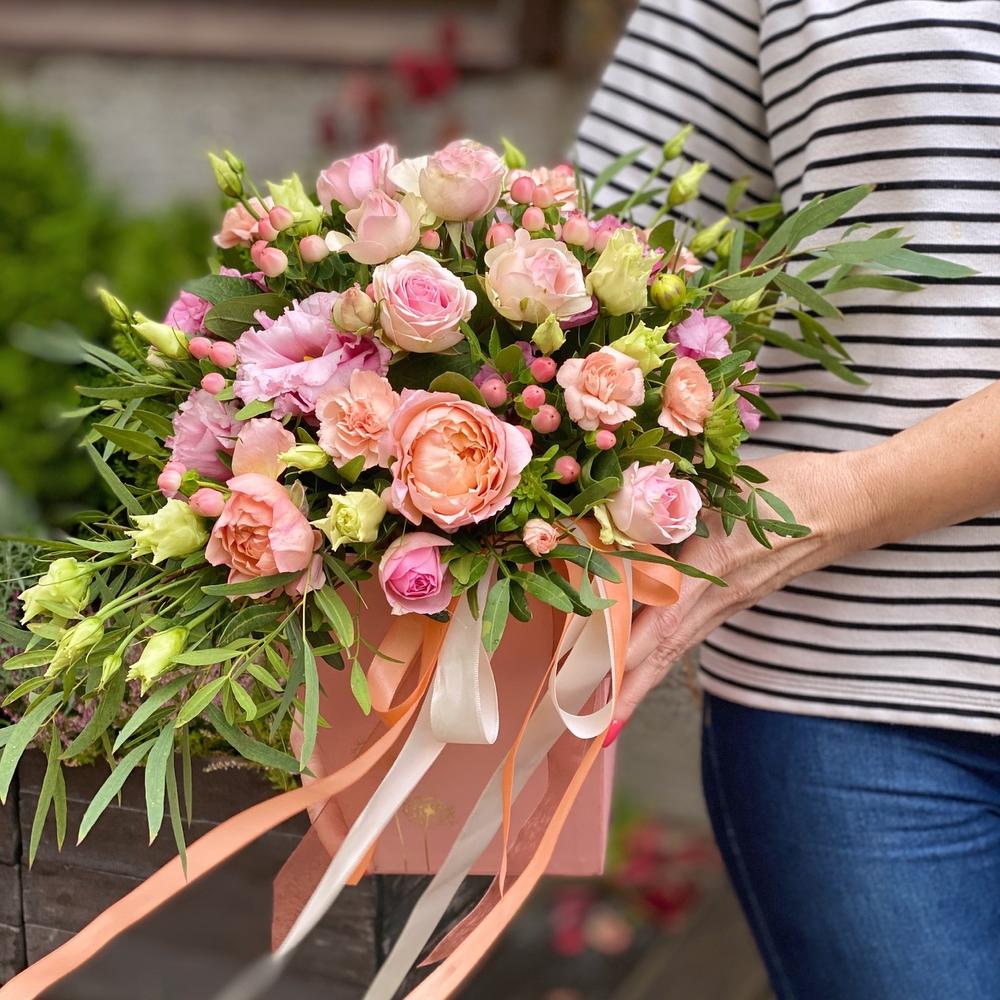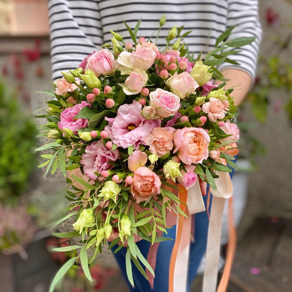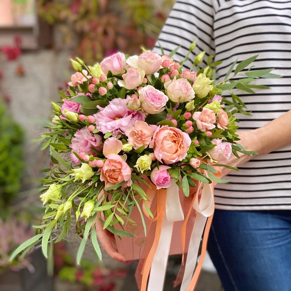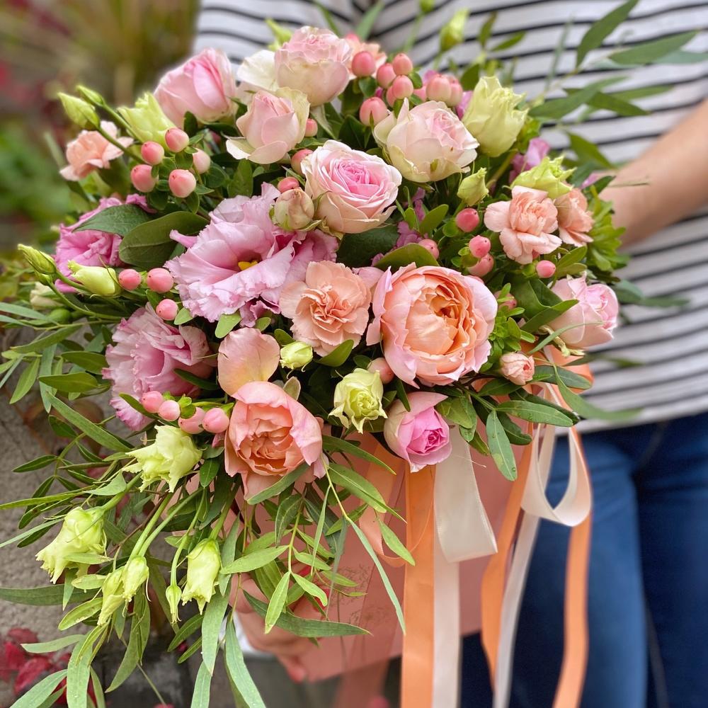 Гвоздики, Кустовые розы, Лизиантусы, Пионовидные розы, Розы