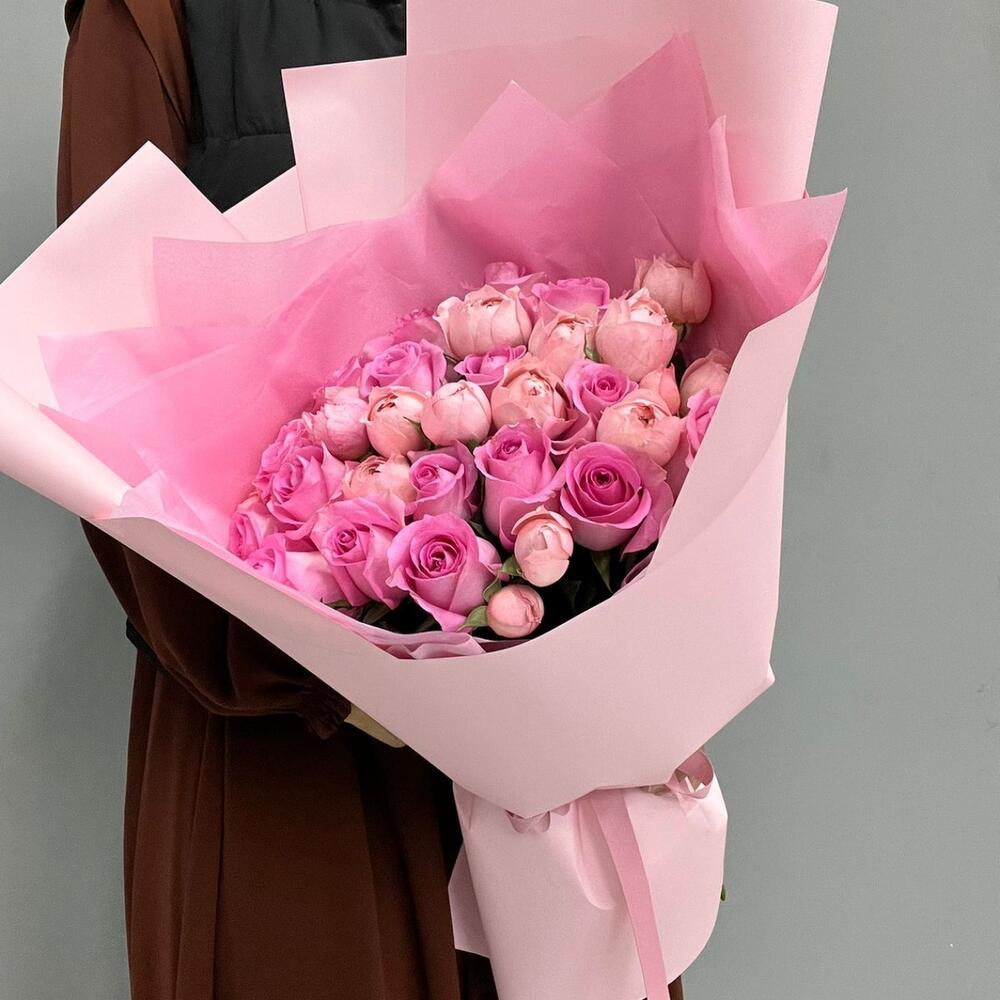 Гвоздики, Кустовые розы, Пионовидные розы, Розы