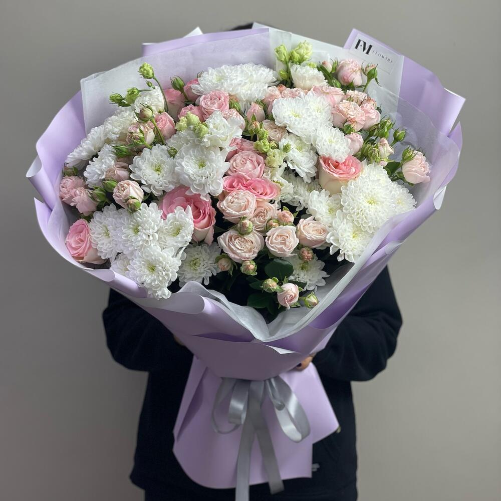 Альстромерии, Кустовые розы, Лизиантусы, Пионовидные розы, Розы, Ромашки