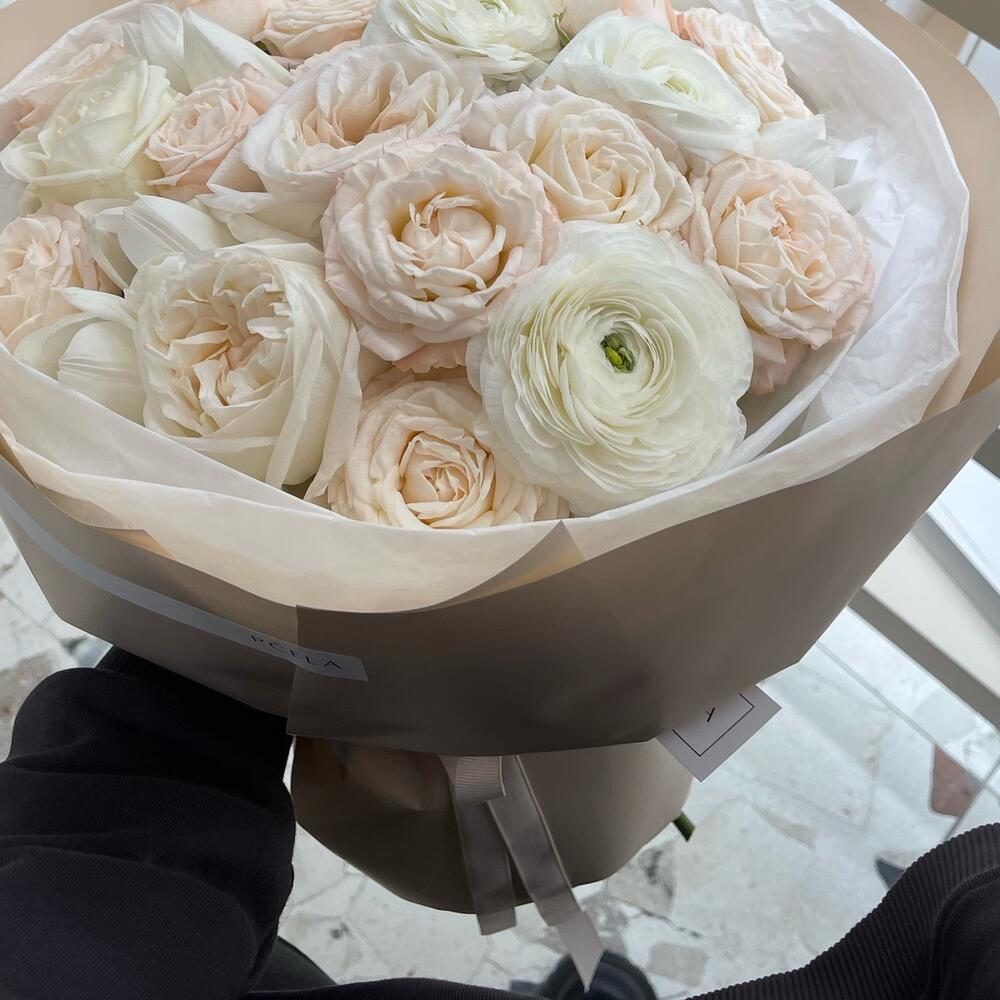 Букет из кустовой пион розы с эвкалиптом (СБ 001)
