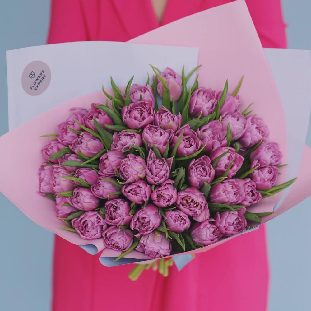 25 пионовидных сиреневых тюльпанов дабл прайс. Букет 200 Kimbirly Flowers
